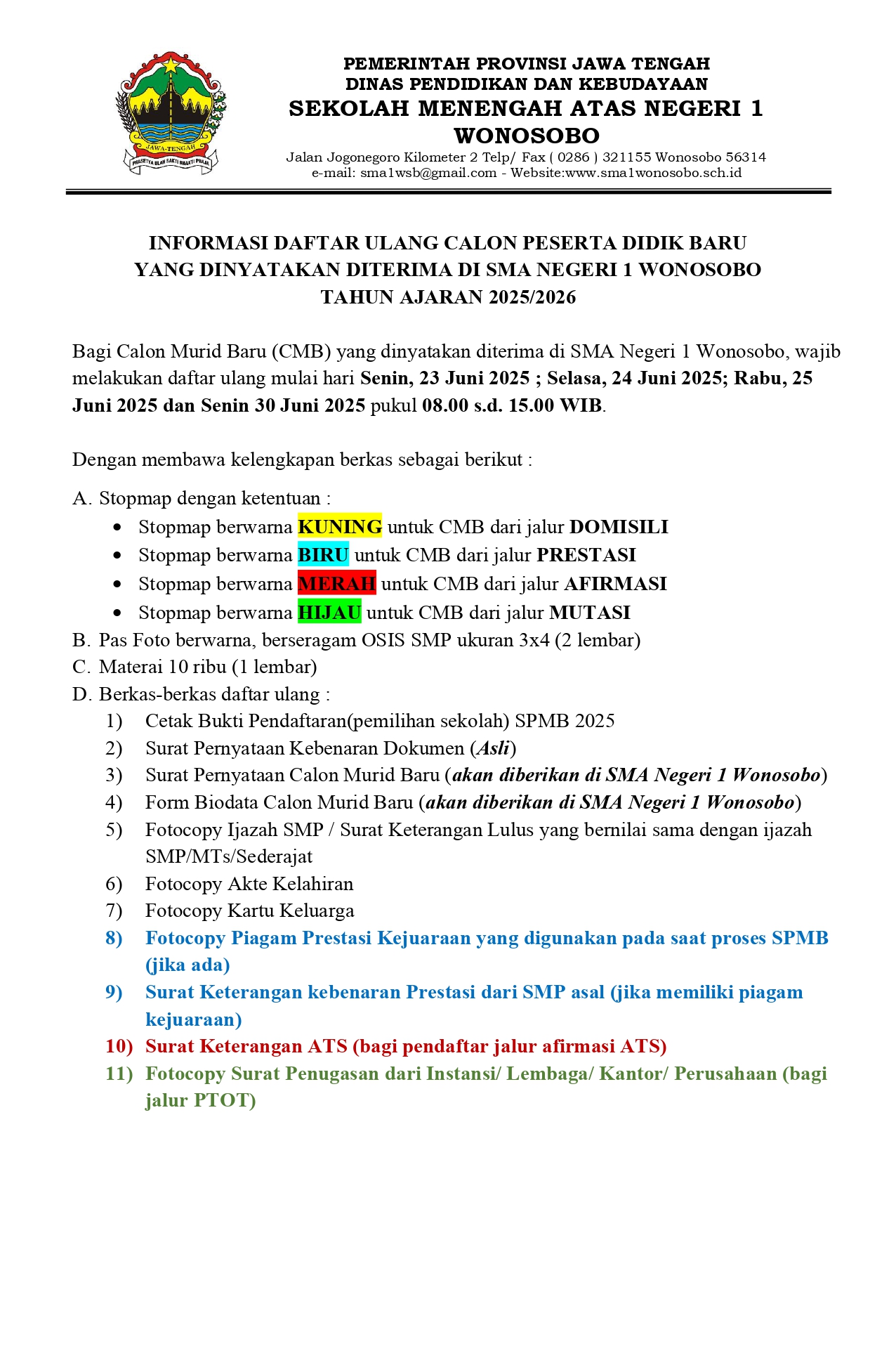 INFORMASI DAFTAR ULANG CALON MURID BARU